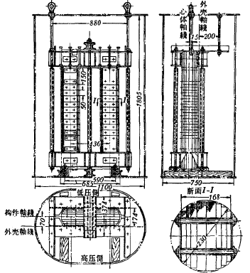 圖3-3是我國制造的35千伏550千伏安消弧線圈的內(nèi)部結(jié)構(gòu)